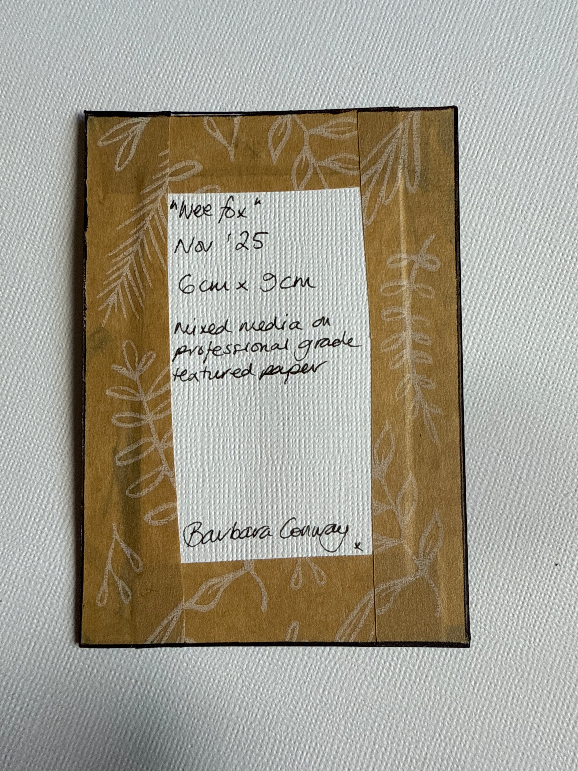 Add a touch of whimsy to your collection with my "Wee fox" miniature original painting. Measuring only 6cm x 9cm, this ACEO mixed media piece is perfect for any folk art lover. Its professional-grade paper ensures high quality, and its compact size makes it easily postable. Get yours now!